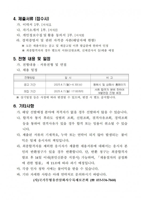 공지 | 2025년 삼화사수륙재보존회 직원 채용 공고
