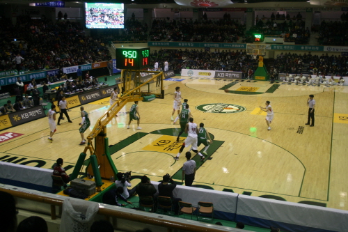 원주 치악경기장에서 펼쳐진 원주동부: 서울SK 의 농구 경기를 관람하고자